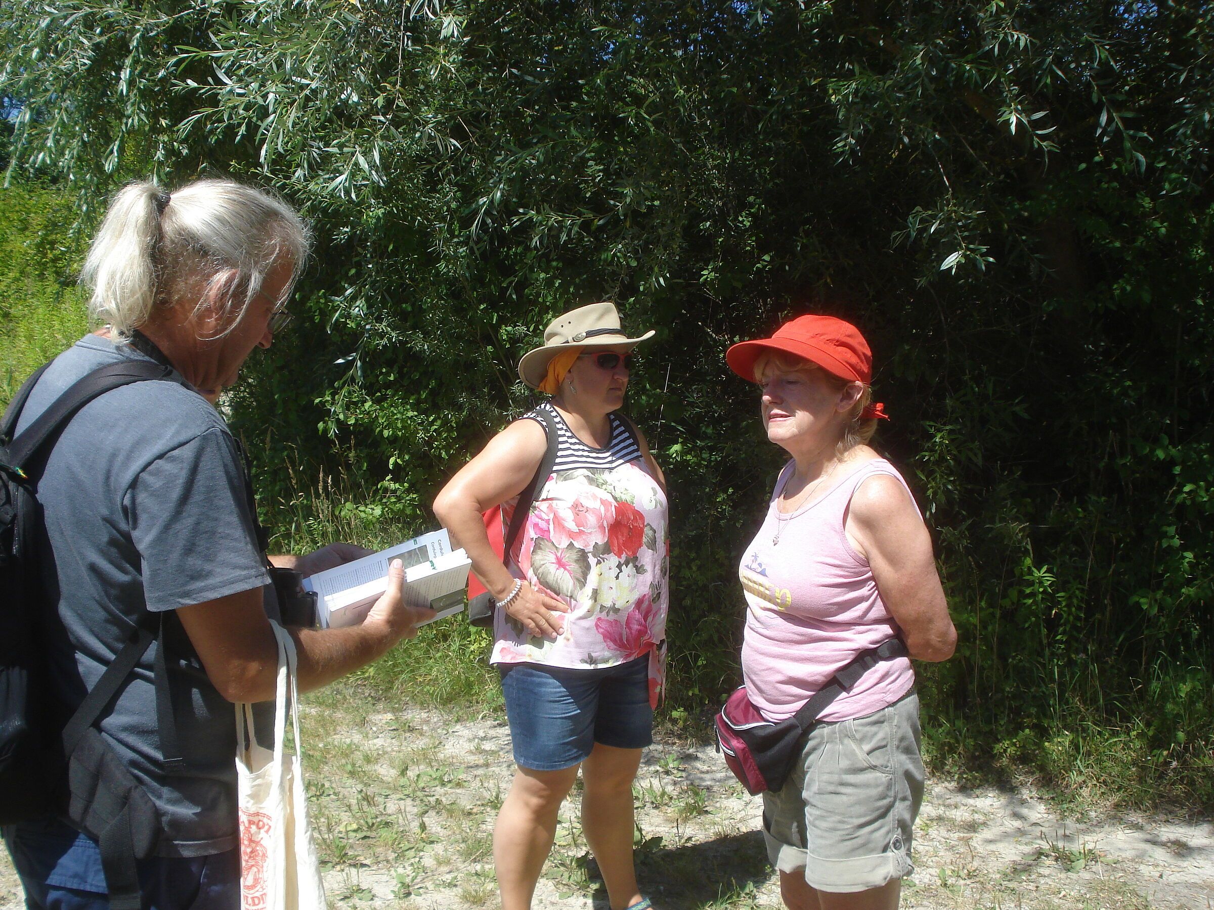 Die Gruppe wanderte weiter die Flutmulde entlang. Leinsinger machte auf eine Große Königslebelle und zwei Gebänderte Prachtlibellen, die über dem Wasser flogen aufmerksam.