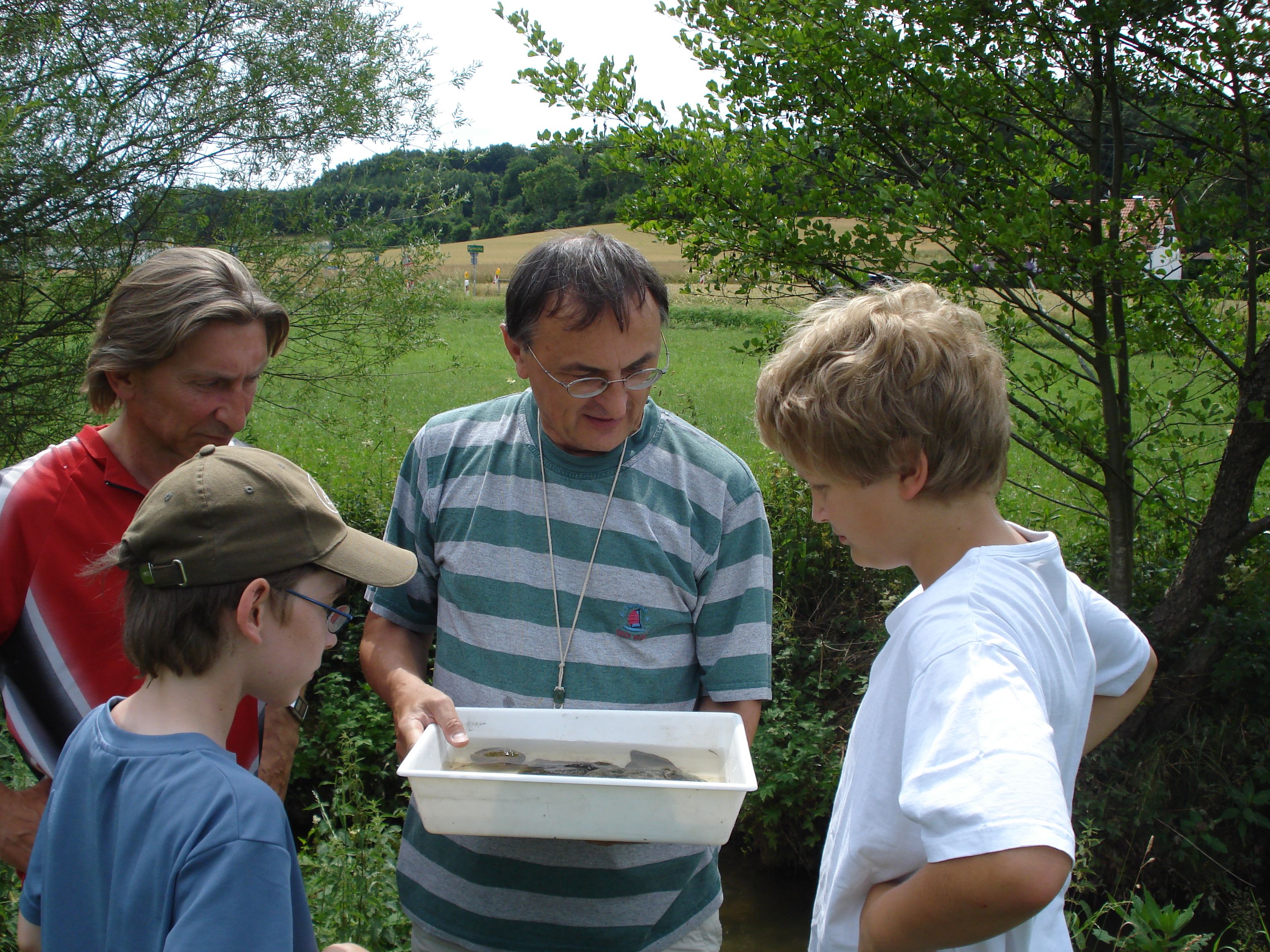 Die diesjährige wasserkundliche Exkursion der Bund-Naturschutz-Kreisgruppe führte an den Aichbach bei Oberaichbach. Der Gewässerbiologe Bertram Peters, der die Exkursion leitete, erläuterte zu Beginn den Begriff Gewässergütebestimmung, der sich früher auf die organische Belastung von Fließgewässern bezog und über die Erfassung der Gewässerorganismen erfolgte. Dabei berücksichtigte man, dass jedes Lebewesen ganz bestimmte Anforderungen an seinen Lebensraum stellt. Da gibt es welche, die nur in sehr sauberem Wasser mit viel Sauerstoff existieren können und schon bei der geringsten Verschmutzung verschwinden. Genauso gibt es aber auch solche, denen es gar nicht schmutzig genug sein kann, und die im Verlauf der Verbesserung der Gewässersituation nicht mehr auftreten. Mit dieser Kenntnis lässt sich anhand der vorgefundenen Gewässerorganismen die Gewässergüte festlegen. Die EU-Wasserrahmenrichtlinie fasse nun diese Gütebetrachtung mit der Untersuchung der Nährstoffbelastung und der Strukturausstattung des Gewässers zu einer gesamtheitlichen Bewertung zusammen. Ziel sei es, alle Gewässer in einen ökologisch guten Zustand hinzuführen oder zu erhalten, informierte Peters.