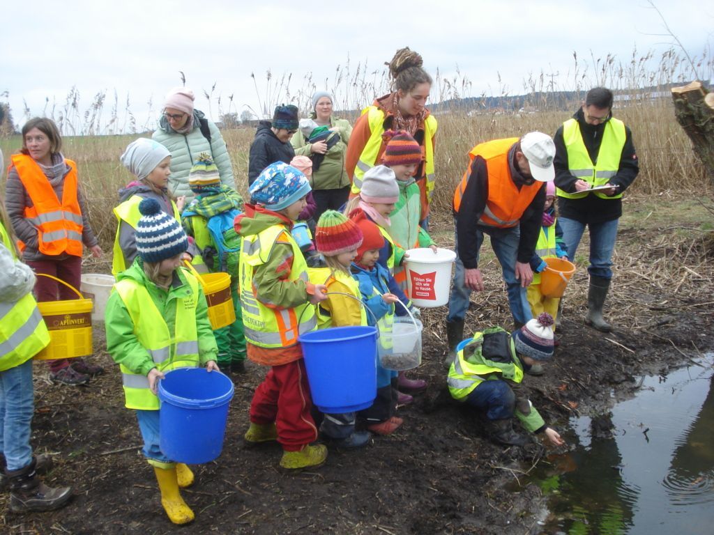 Bund Naturschutz Kindergruppen besuchen Amphibienzaun in Dornau