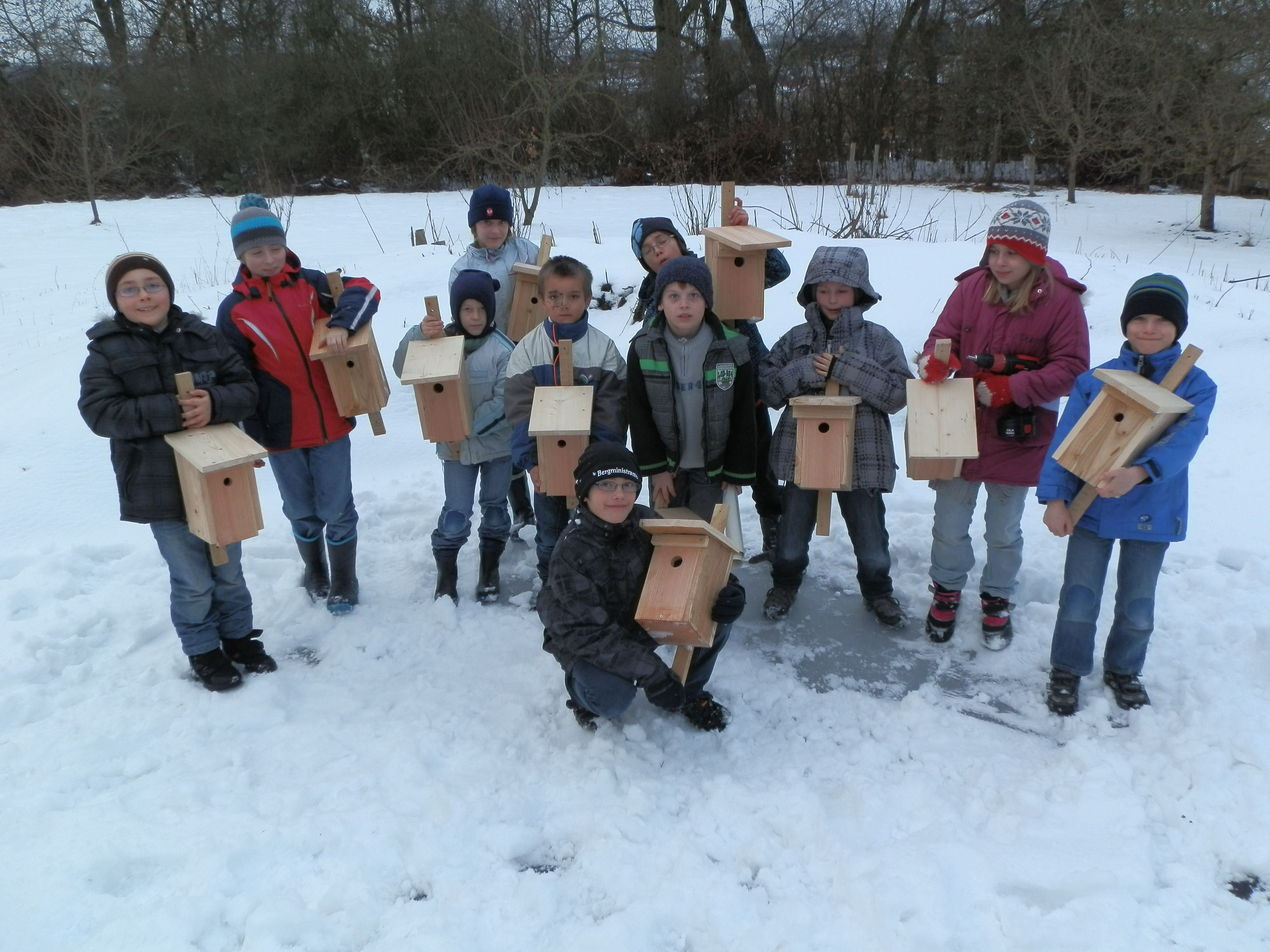 Rechtzeitig bevor die neue Brutsaison für unsere Singvögel beginnt, trafen sich die Kinder der Vilsbiburger Bund Naturschutz Kindergruppe und einige Eltern zum Nistkästen bauen. Je nach der Größe des gebohrten Einflugloches sollen die kleineren Blaumeisen oder die größeren Kohlmeisen und Kleiber die Kästen beziehen. Außerdem informierten sich die Kinder über Aussehen, Gesang und Lebensweise verschiedener heimischen Vögel.