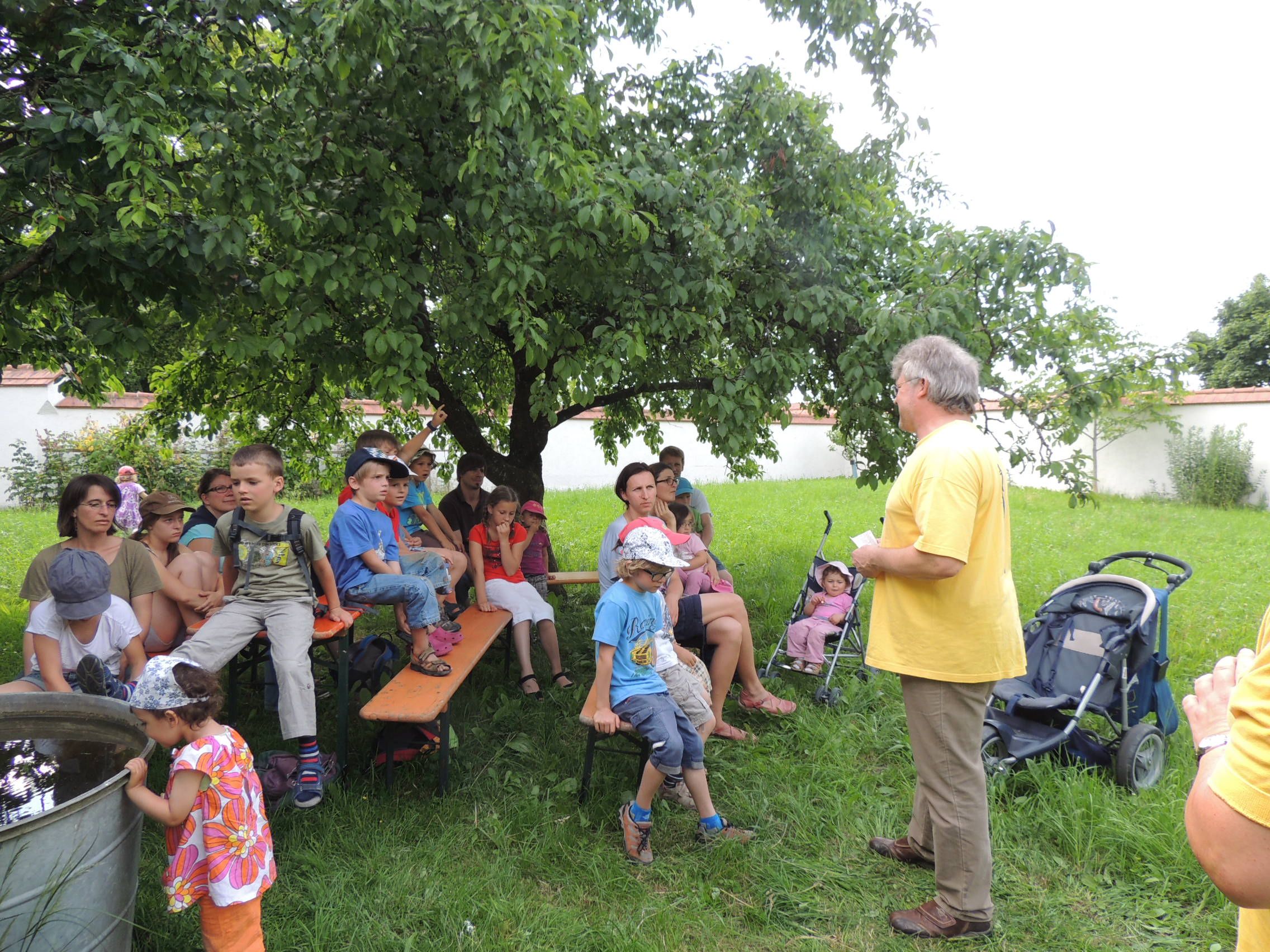 Ein Besuch auf einem Bauernhof gefällt allen Kindern, aber dieser Nachmittag war etwas Besonderes weil die kleinen und großen Teilnehmer der Bund Naturschutz Kindergruppe Vilsbiburg von der Bäuerin begleitet wurden von den Hasen zur brütenden Henne, zu den Ponys und Kälbchen in jeder Altersstufe bis zu den großen Milchkühen. Dabei erklärte sie, daß sich die Kühe auf ihrem Biohof den ganzen Sommer frei zwischen Stall und Weide bewegen können. Die Kinder konnten einer Kuh bei der Bürstenmassage zuschauen und wie die kleinen Kälbchen getränkt werden. Sie durften sogar eine Schafherde von der Weide in den Hof treiben.