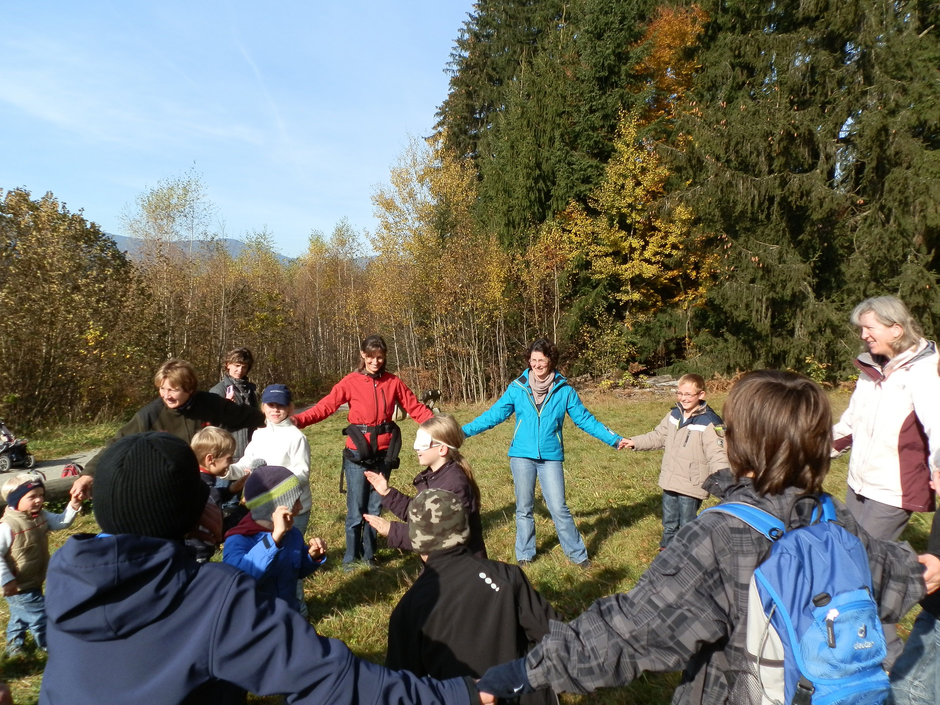 Bei einer spannenden Waldrallye erfüllten die jungen Naturforscher der Bund Naturschutz Kindergruppe Vilsbiburg verschiedene Aufgaben im Wald. Wie dick ist die mächtigste Eiche? Sie kletterten über eine Baumbrücke. Sie suchten nach "Saurierfutter" und fanden Farne und Schachtelhalme. Gemeinsam untersuchten sie morsches Holz und überlegten wer oder was das Holz zerstört und im Laufe der Zeit wieder zu Erde umwandelt. Mit selbst gesuchten Holzinstrumenten machten sie ein kleines Waldkonzert. Zum Schluß erhielt jedes Kind eine Auszeichnung "Schlauer Fuchs".