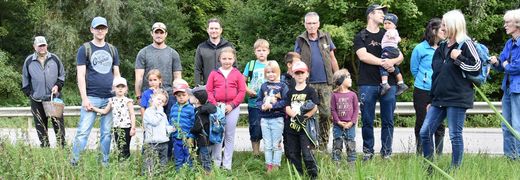 04.09.2025 - OG Rottenburg Im Rahmen des Ferienprogramms erkundeten 13 Kinder mit ihren Eltern bei einer Wanderung der BN-Ortsgruppe Rottenburg den vom Biber gestalteten Otterbach mit seinen Sickerquellen. Naturschutzwächter Gerd Röhrdanz erklärte anschaulich die Lebensweise der Biber anhand eines Präparats, Spuren und weiterer Exponate. Höhepunkt war ein von Bibern gebauter Staudamm im Straßengraben, bei dem auch Schleifspuren vom Pflanzentransport aus einem nahegelegenen Maisfeld sichtbar waren. Hier gehts zum Bericht.
