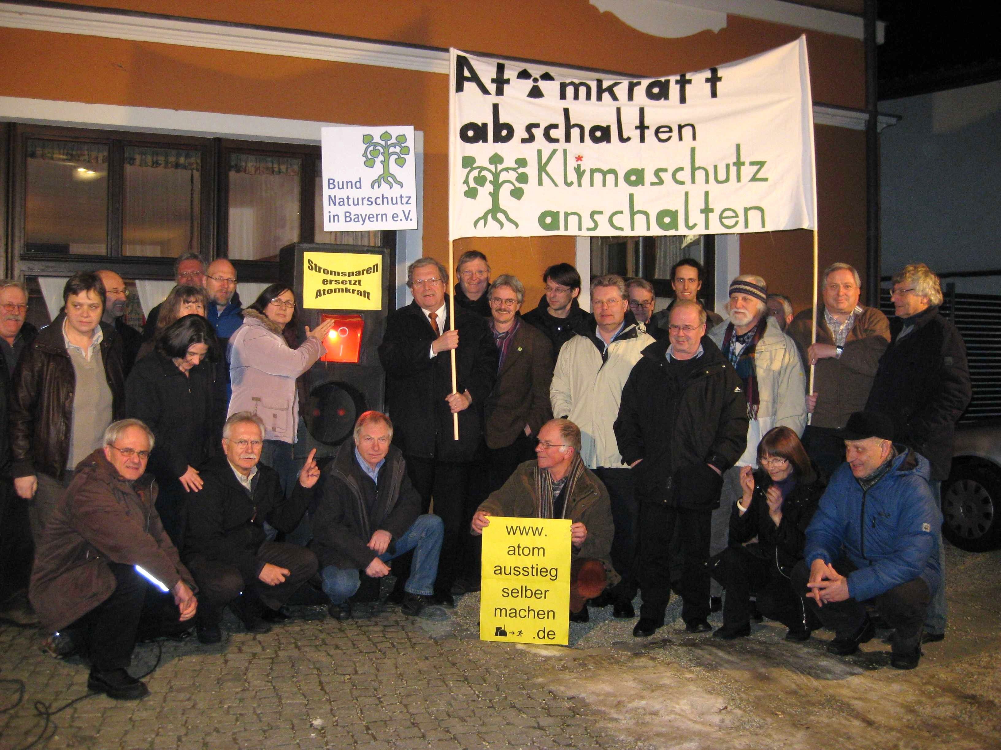 Mit einem großen Modell einer Steckerleiste mit Kippschalter demonstrierten Naturschützer – auch von der BN-Kreisgruppe Landshut – am 9. Februar in Plattling beim Halbjahrestreffen der niederbayerischen Kreis- und Ortsgruppen des Bundes Naturschutz (BN), wie es möglich ist, sowohl den Atomausstieg als auch den Klimaschutz voranzubringen.
