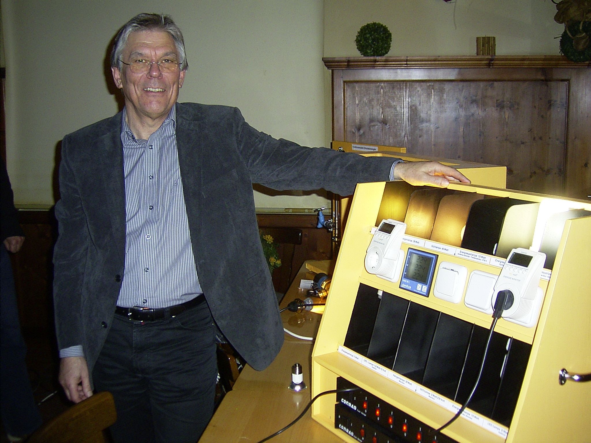 Scholz veranschaulichte, wo Strom im Haushalt verbraucht wird. So würden durchschnittlich 13 Prozent für Beleuchtung, 13 Prozent für Kochen, 18 Prozent für Waschen und Trocknen, 24 Prozent für Kühlen und Gefrieren, 10 Prozent für Audio, TV, PC und Sonstiges, 7 Prozent für Heizungs- und Warmwasserpumpen und beachtliche 15 Prozent für Standby beziehungsweise Schein-Aus verbraucht. Es sei wichtig, den Verbrauch von Strom monatlich mit einem Messgerät zu kontrollieren. Der Königsweg beim Stromsparen sei, weniger zu verbrauchen. Der durchschnittliche Stromverbrauch pro Tag und Haushalt liege bei rund zehn Kilowattstunden, damit könne man etwa 50 Stunden Fernsehen oder eine 100 Watt Glühbirne 100 Stunden brennen lassen. Strom sei die Energie, die beim heutigen Strommix immer noch am meisten CO2 pro Kilowattstunde erzeuge, betonte Scholz.