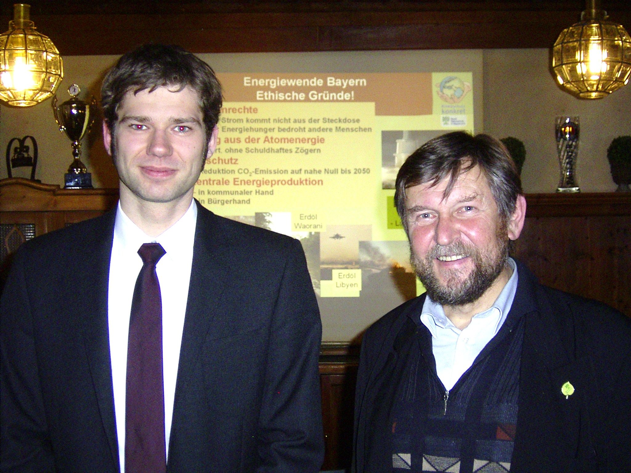 Sebastian Bauer und Dr. Herbert Barthel informierten beim Bund Naturschutz über landschaftsverträgliche Windkraftnutzung