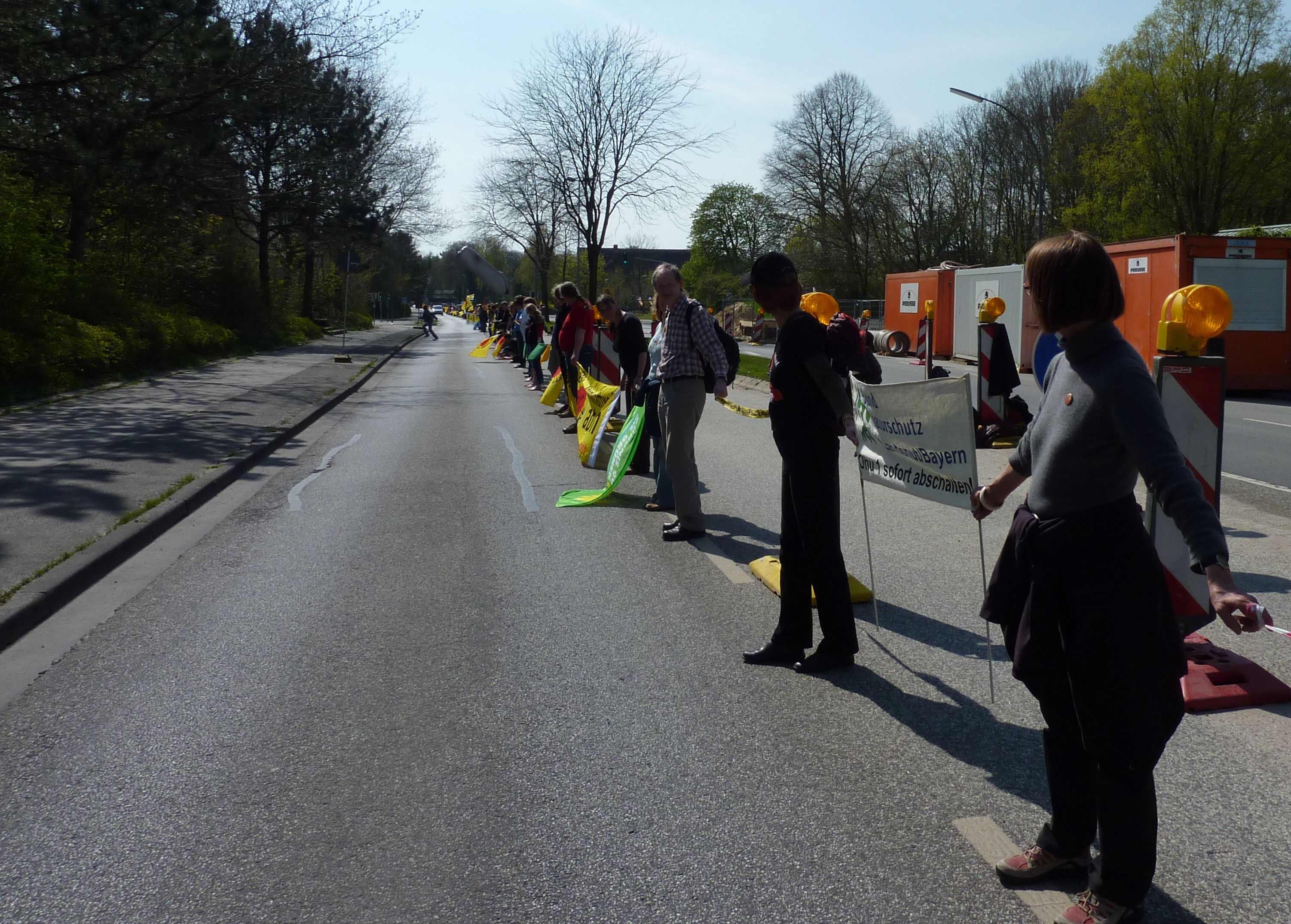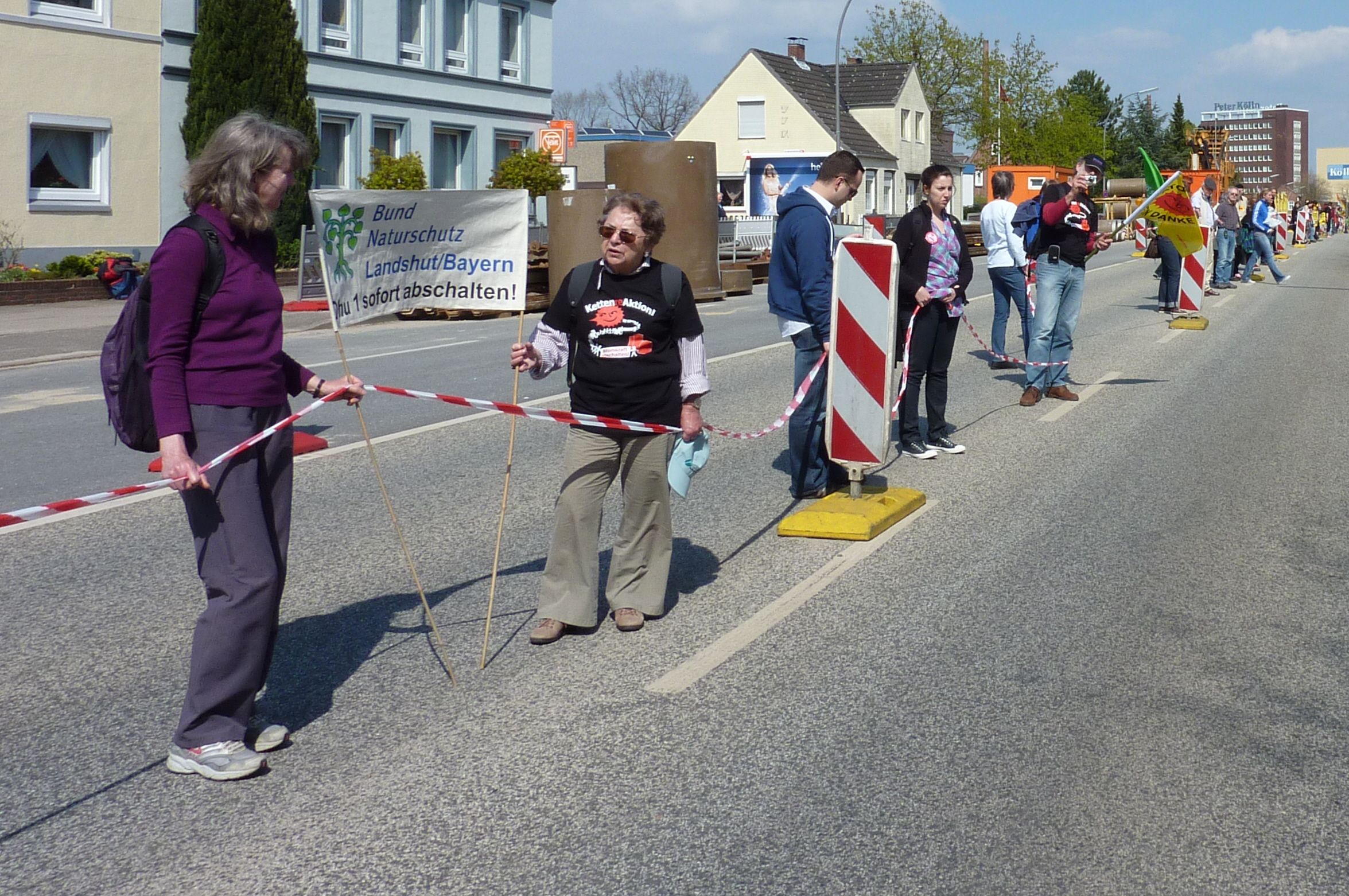 Mit einer 120 Kilometer langen Aktions- und Menschenkette vom AKW Krümmel quer durch Hamburg bis zum AKW Brunsbüttel demonstrierten am Samstag, den 24. April 2010 BN-Aktive der Kreisgruppe Landshut gemeinsam mit über 120.000 Menschen gegen die geplante Verlängerung der Atomlaufzeiten.