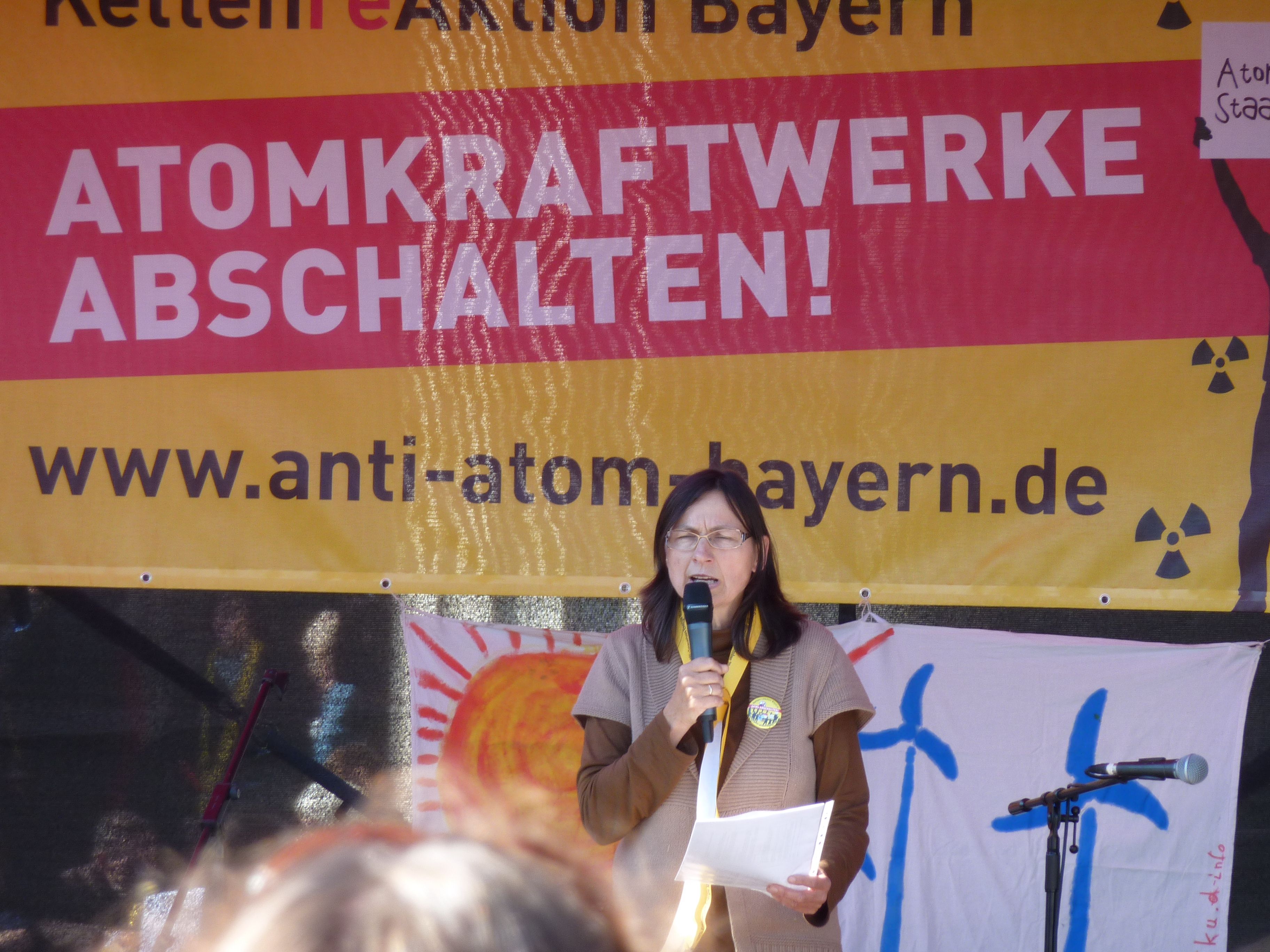 Zuerst erinnerte Karin Wurzbacher an Vorgängerstudien in mehreren Ländern, die alle ein signifikant erhöhtes Krebsrisiko für Kleinkinder, die in der Umgebung von Kernkraftwerken wohnen, gezeigt hatten. Dies habe das Bundesamt für Strahlenschutz bewogen, die KIKK-Studie, die weltweit aufwändigste und genaueste Untersuchung zu diesem Thema, in Auftrag zu geben. Beauftragt war das Kinderkrebsregister in Mainz. Das Ergebnis dieser Studie sei leider ernüchternd, so Wurzbacher. Die Studie beweise, dass die Wahrscheinlichkeit für ein Kind an Leukämie oder Krebs zu erkranken, um so höher sei, je geringer der Abstand seines Wohnortes von einem in Betrieb befindlichen Atomkraftwerk ist. Im Nahbereich bis fünf Kilometer verdopple sich das Leukämierisiko. Auch außerhalb der fünf Kilometerzone sei das Risiko im Untersuchungsgebiet erhöht. Dieser Effekt sei bei Standorten mit alten Siedewasserreaktoren, wie beispielsweise Isar 1 in Ohu, stärker ausgeprägt als bei Standorten mit neueren Druckwasserreaktoren (Grafenrheinfeld).