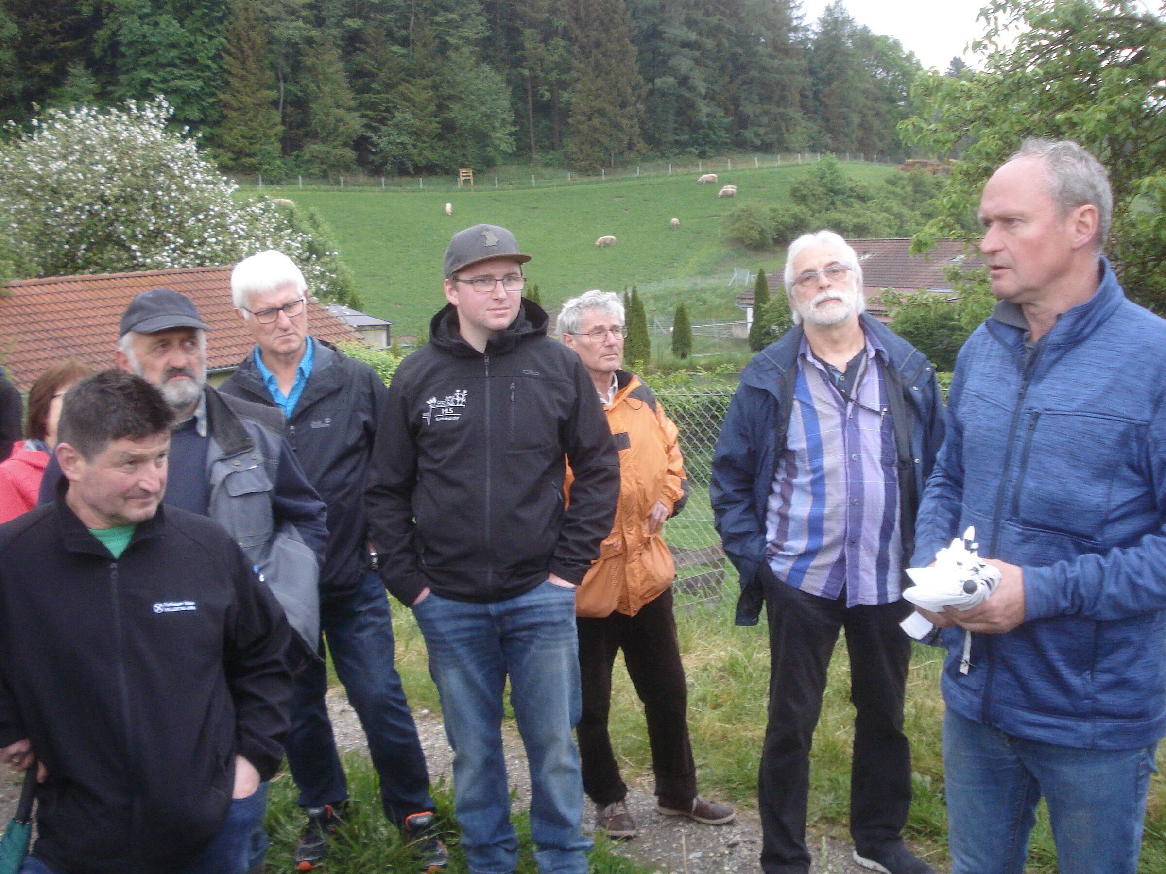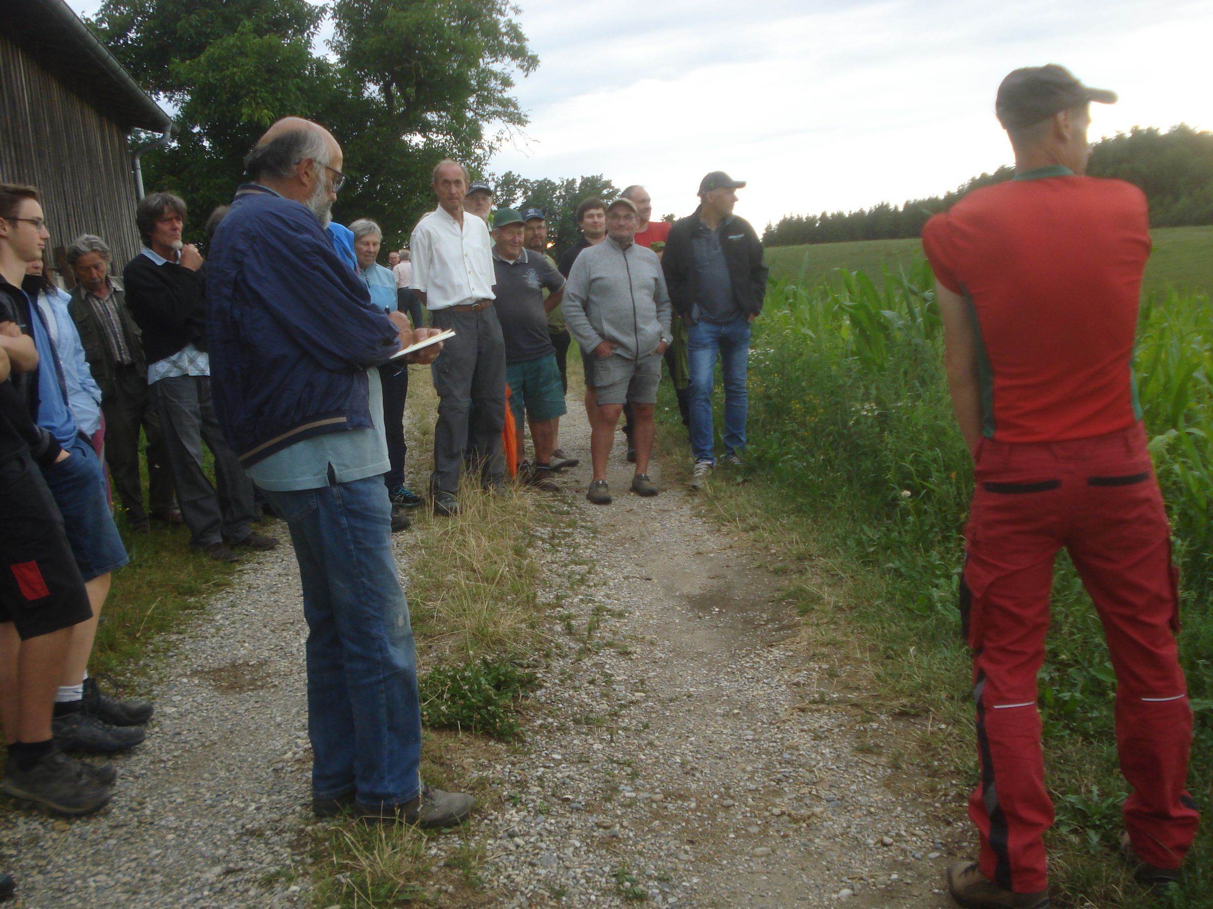 Vor seinem Kartoffelfeld stellte Lackermeier fest, dass man bei den heurigen Frühjahrsaussaaten die beiden vergangenen frostarmen Winter gemerkt habe. Die Frostgare, welche im Frühjahr normalerweise für lockere Böden sorge, war kaum vorhanden. In Bezug auf die reichlich vorhandenen Kartoffelkäfer und deren Larven stellte Naturschützer Johannes Selmansberger bedauernd fest, dass ein natürlicher Feind des Käfers, das Rebhuhn, in unseren Fluren kaum mehr vorkomme.