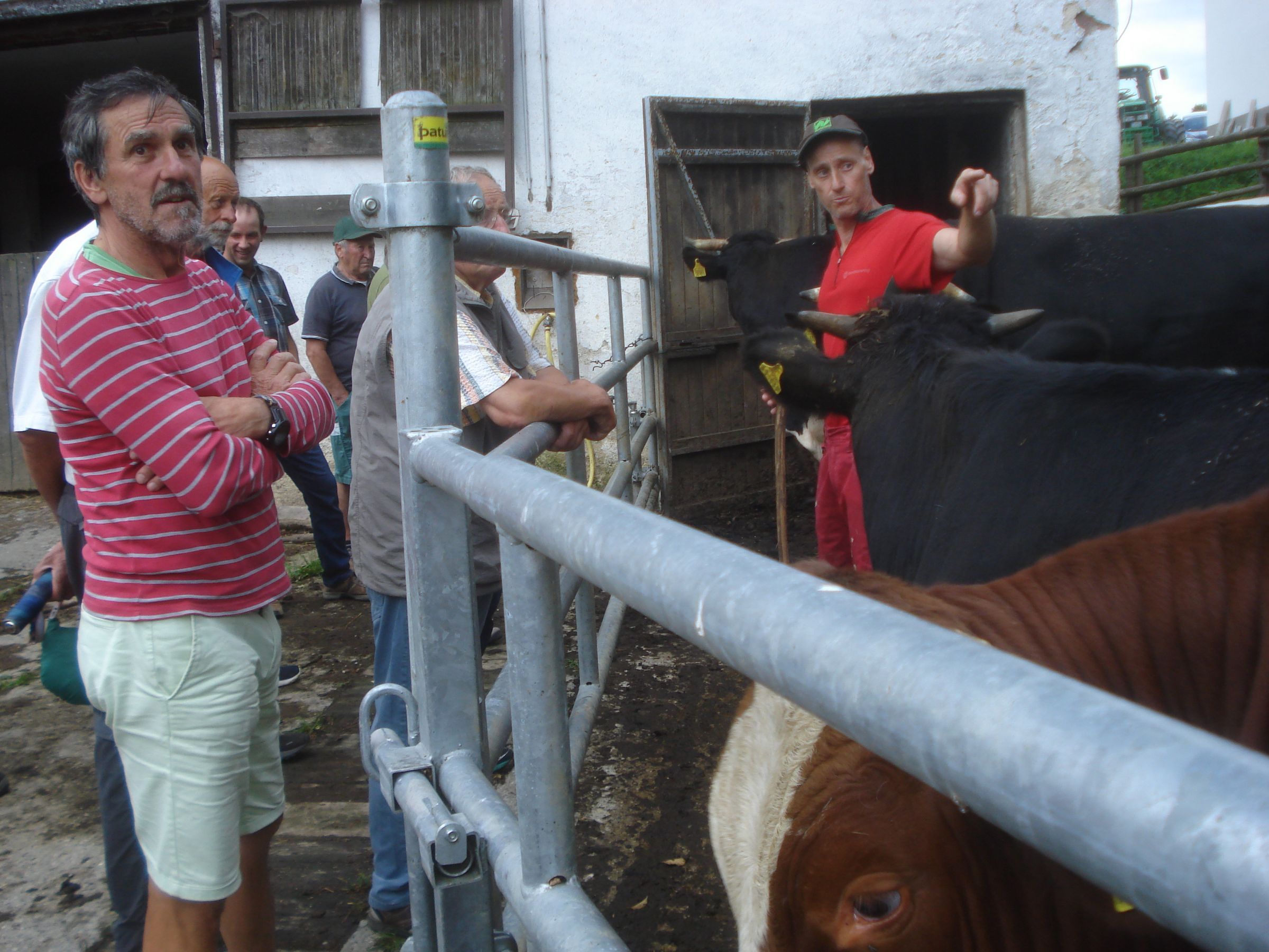 Anschließend wurde noch die Ochsenmast von Martin Lackermeier besichtigt. Die Tiere würden in einem Laufstall (Tretmiststall) mit offener Front und Auslauf ins Freie gehalten. Die Liegeflächen seien eingestreut. Die Jungtiere kaufe er, so der Biobauer, als Fresser von einem langjährigen Biobauernkollegen. Die Schlachtung erfolge im Alter von zwei bis zweieinhalb Jahren. Die Fleischvermarktung geschehe in Zusammenarbeit mit einer kleinen Metzgerei in der Nähe direkt an den Endverbraucher.