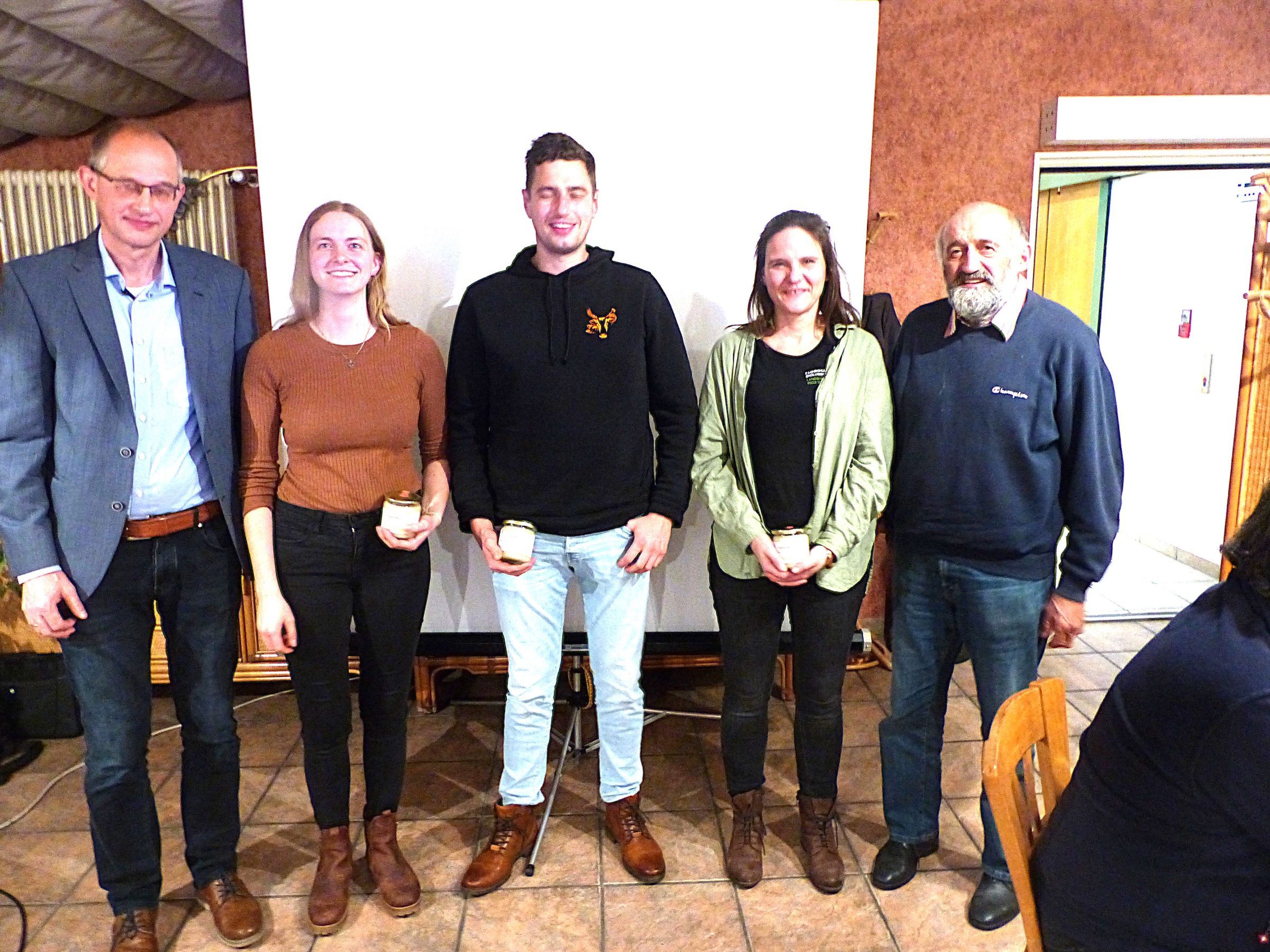 Vinzenz Gschwendtner kommt aus Brannenburg im Landkreis Rosenheim. Der elterliche Milchviehbetrieb mit etwa 45 Kühen und 67 Hektar Nutzfläche (davon die Hälfte Almweide) soll auf ökologische Wirtschaftsweise umgestellt werden. Die häufige Erkrankung bei Kälbern mit seiner Milchaustauscheraufzucht veranlasste ihn, andere Tränkevarianten (angesäuerte Vollmilch und angesäuerter Milchaustauscher) zu testen mit positiven Ergebnissen. Aus Marktrodach in Oberfranken stammt Andreas Backer. Auf dem elterlichen Hof wird eine Milchviehherde mit 35 Kühen gehalten und Ackerbau betreiben. Die landwirtschaftliche Nutzfläche beträgt 110 Hektar (60 Hektar Ackerland und 50 Hektar Wiesen und Weiden). In seiner Arbeit beschäftigte er sich mit einem Vergleich von Braugerstensorten und verschiedenen Düngevarianten. Von einem Milchviehbetrieb in Schmidham bei Dorfen kommt Klaus Reger. Derzeit wird ein neuer Milchviehstall gebaut, wodurch der Bestand auf 80 Kühe verdoppelt werden kann. Er verglich die Wirtschaftlichkeit der Futterbauvarianten Kleegras, Silomais und verschiedener Ganzpflanzensilagemischungen.