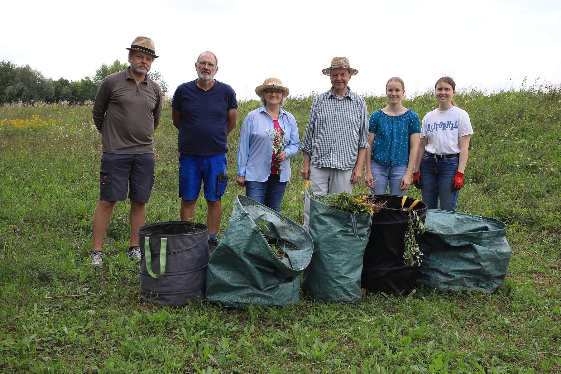 Behutsamkeit und Vorsicht ist gefragt, wenn einzelne Pflänzchen konkurrenzschwacher Arten kleinräumig am Bruckberger Deich freigestellt werden müssen, um gedeihen zu können. So hat es sich die ansässige Ortsgruppe des Bund Naturschutzes zur Aufgabe gemacht, die Pflegemaßnahmen der Fachbehörden durch Handarbeit zu unterstützen.