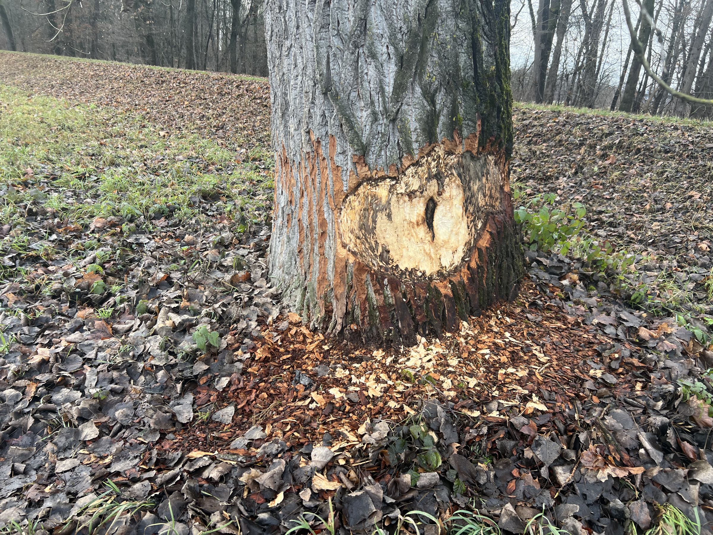 Der Spaziergang entlang des Isardamms war begleitet von Entdeckerlust. Frische Spuren wurden gesichtet, angenagte Stämme (leider auch an sehr alten Schwarzpappeln, bei denen der bis vor kurzem bestandene Biberschutzzaun abgebaut worden war) und die typischen Biberrutschen – ein Zeichen dafür, dass die Tiere in der Gegend aktiv sind und sich auf die Winterruhe vorbereiten. Natürlich durfte auch ein kleines Picknick mit Knabbereien nicht fehlen. Wieder am Ausgangspunkt zurück sorgte das Biber-Spiel für gemeinsamen Spaß: zwei Mannschaften traten in einer Art Wettlauf gegeneinander an, welcher mit Biberkostüm und Brille ausgestattet durchgeführt werden musste. Und weil Biber an Land eher gemütlich unterwegs sind, balancierten die Kinder auf dem Rückweg zur Gruppe zusätzlich einen Kiefernzapfen zwischen den Knien – das war ganz schön wackelig.