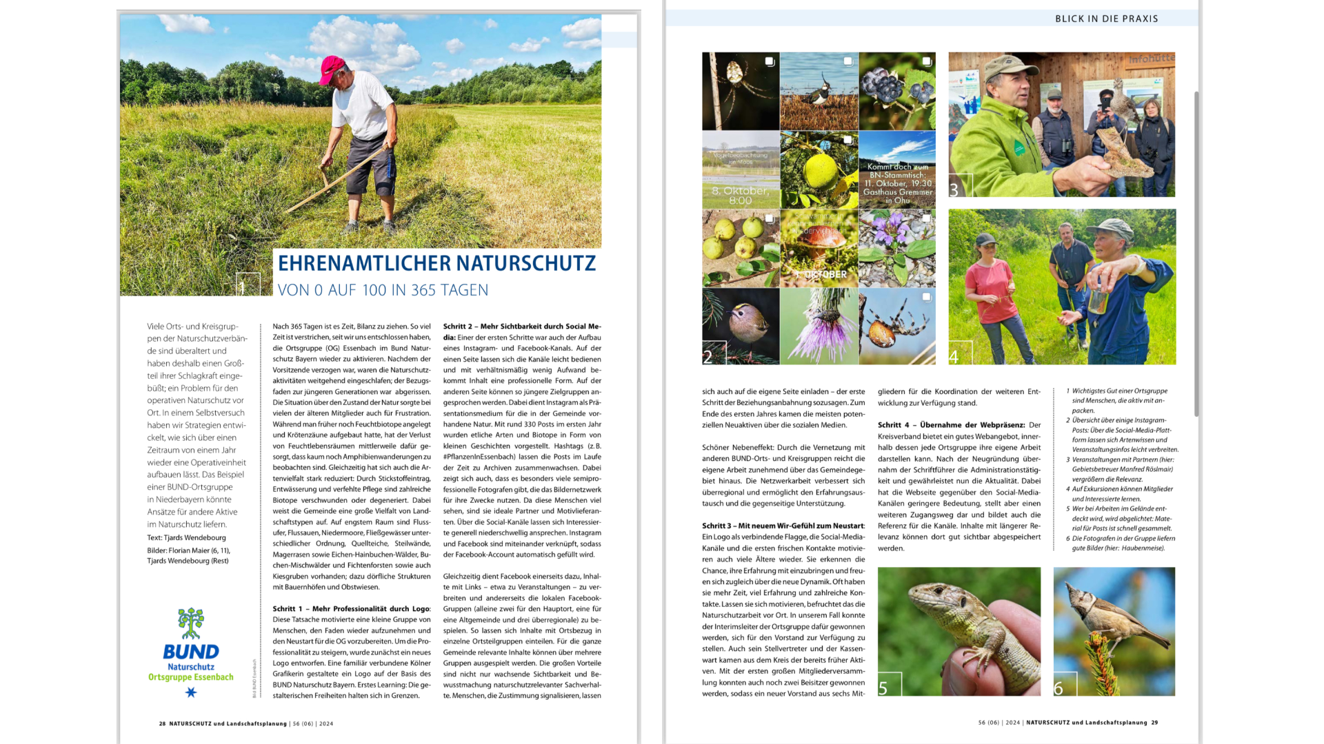 Essenbach, 17. Mai 2024: Mit zwei neuen Flyern in Postkartenform wird die BN-Ortsgruppe demnächst ihre Öffentlichkeitsarbeit verbessern. Dabei ermöglichen die Karten die Ansprache unterschiedlicher Zielgruppen: Jugendliche werden per QR-Code erst einmal zu Instagram eingeladen. In dem Sozialen Netzwerk postet die Ortsgruppe regelmäßig Bilder aus der Natur im Markt. Die zweite Karten verlinkt direkt zur BN-Mitgliedschaft und stellt auf der Rückseite unterschiedliche Möglichkeiten der Unterstützung vor. So soll das lokale Netzwerk weiter ausgebaut werden.