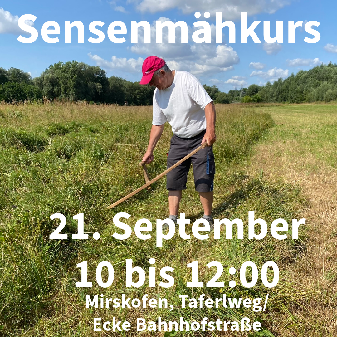 Am 22 Juli bietet die Ortsgruppe Essenbach in Ohu (9 bis 11 Uhr am Ende der Lärchenstrasse) die Möglichkeit, das Sensen und den Umgang mit dem Sensenblatt zu erlernen.