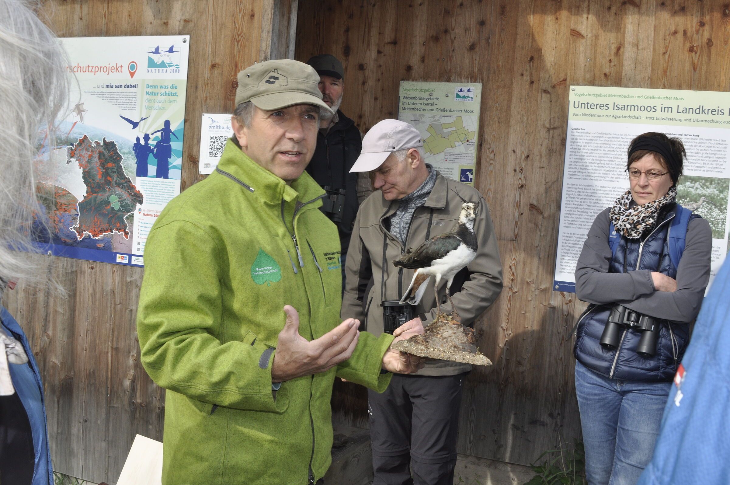 Am Ende zeigte sich das Wetter freundlicher als erwartet: Zur traditionnellen Wiesenbrüter-Exkursion am 1. Mai ins Naturschutzgebiet Mettenbach-Grießenbacher Moos schien die Sonne über dem Niedermoor. Gebietsbetreuer Manfred Röslmair vom Landschaftspflegeverband Landshut erklärte die Bedeutung des Moos' für die Wiesenbrüter und Watvögel in Bayern und die Bemühungen für ihren Schutz. Dabei appellierte er auch noch einmal an Bürgerinnen und Bürger, die Hunde im Moos an der Leine zu führen.