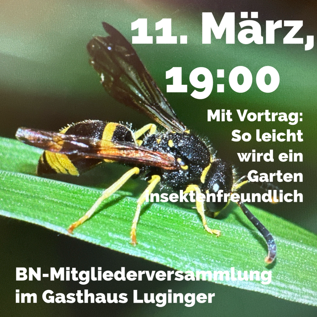 Am 11. März treffen wir uns um 19:00 im Gasthaus Luginger in Mirskofen zur Mitgliederversammlung. Wir sagen Euch, was gerade passiert und was geplant ist. Und wir wollen Euch zeigen, wie einfach es ist, den Garten so zu gestalten, dass er für Insekten attraktiv ist..Wir freuen uns auf Euch. (Im Bild übrigens eine einzeln lebende Lehmwespe)