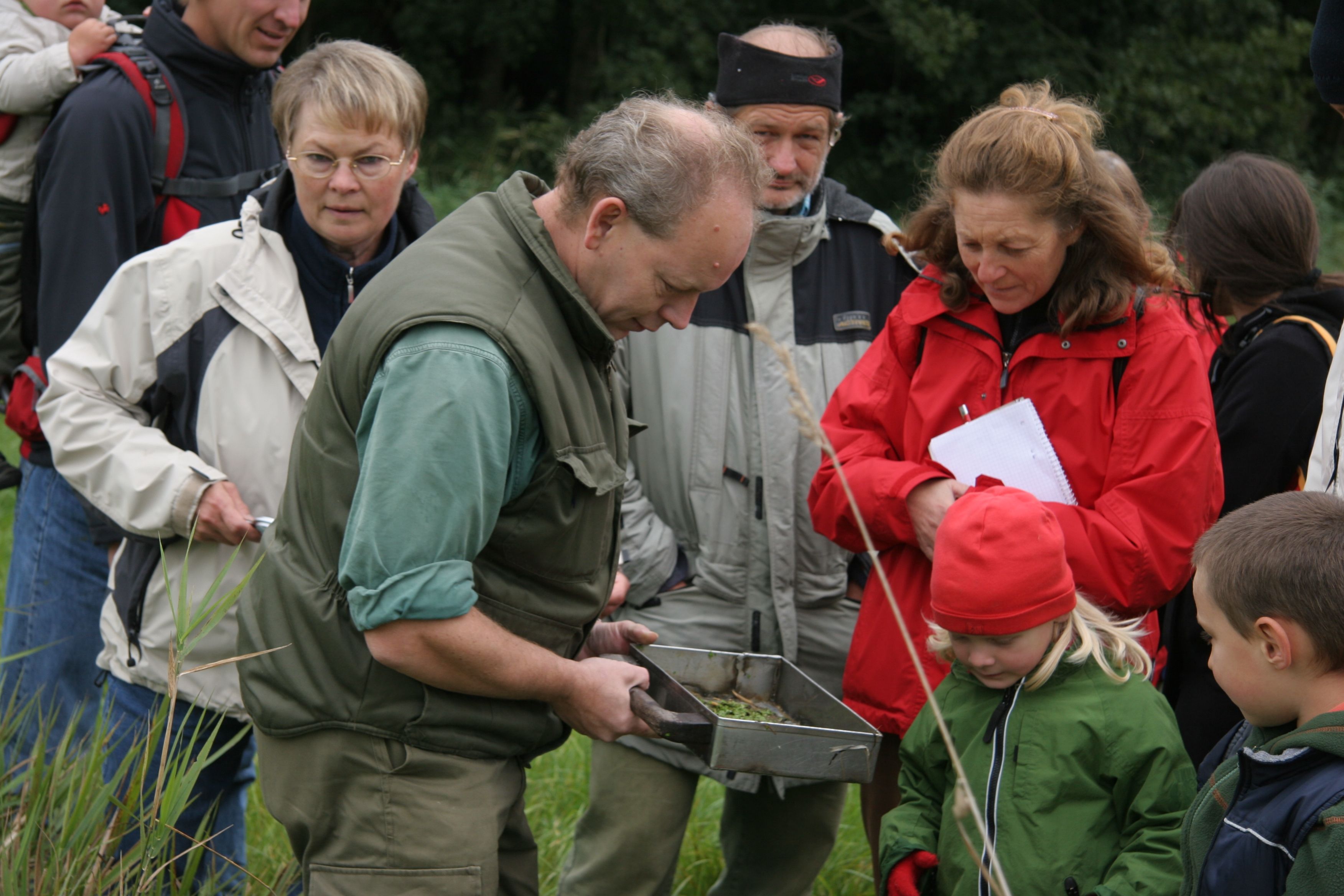 In dem untersuchten Graben stellte der Gewässerbiologe eine sehr artenreiche Lebensgemeinschaft fest. Es fanden sich neben vielen Molchen verschiedene Arten von Wasserkäfern, Eintagsfliegen- und Köcherfliegenlarven, Rückenschwimmer, Strudelwürmer, Egel, Fliegen- und Mückenlarven, Wasserasseln und Libellenlarven. Am Ufer flogen Prachtlibellen und Azurjungfern. Diese vielen Arten deuten auf einen intakten Lebensraum hin, der aber immer wieder einer vorsichtigen Pflege bedarf, informierte Peters die Exkursionsteilnehmer.