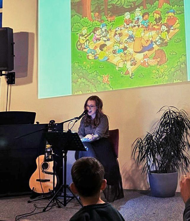 Bei einer Buchlesung in der Freien Evangelischen Gemeinde in Moosburg konnten die jüngsten Besucher gemeinsam mit ihren Eltern und Großeltern dieses besondere Erlebnis genießen. Sara Brandhuber präsentierte nicht nur ihre Geschichten, sondern hatte auch passende Musik im Gepäck: Zu den Erzählungen rund um den Hamster Gustl und seine Freunde, die sich mutig gegen den Müll im Wald zur Wehr setzen, gab es teils fetzige, teils balladenhafte Lieder, die sie selbst geschrieben und produziert hat.