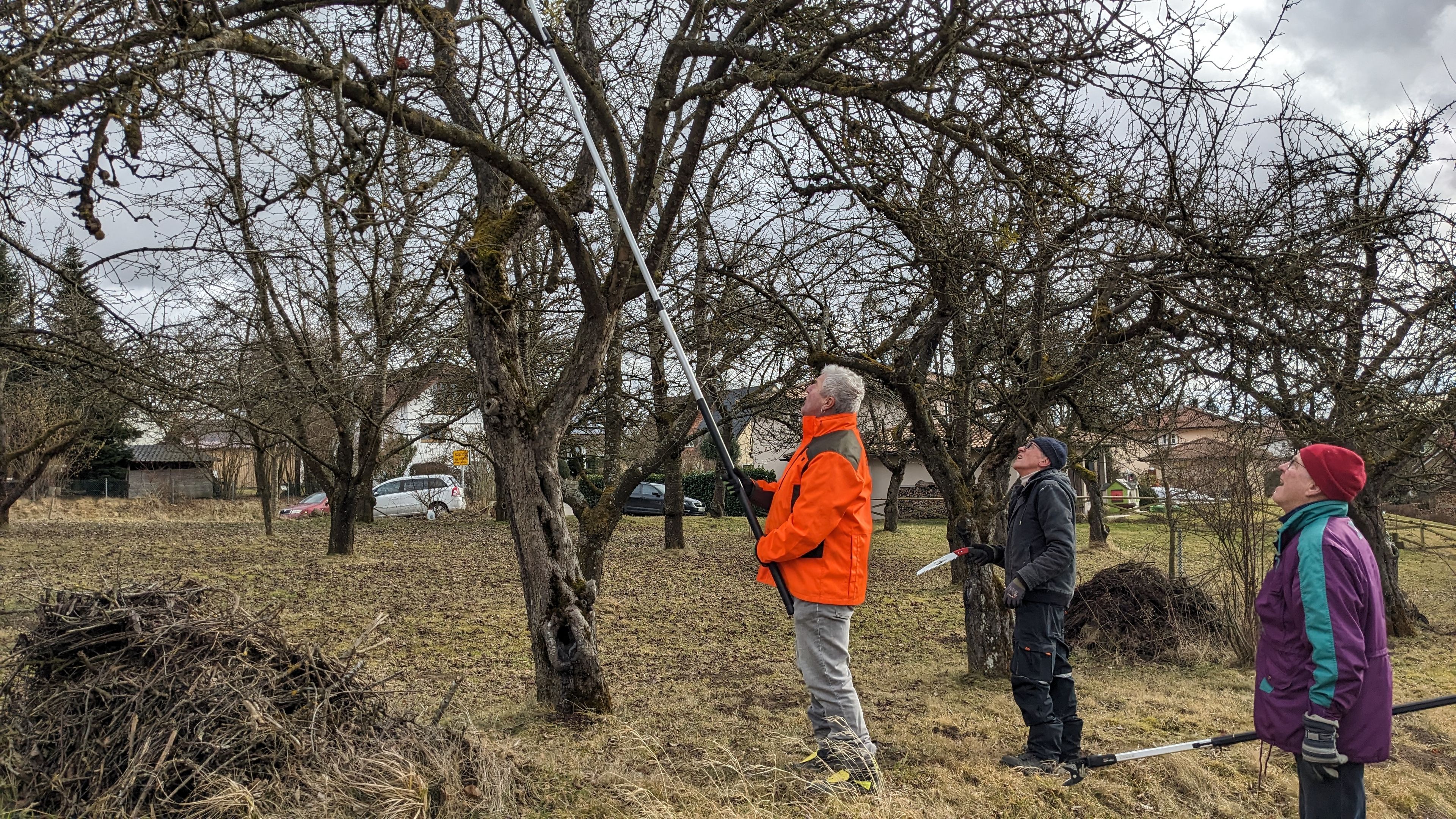 Es ist wieder an der Zeit, die Obstbäume zu schneiden. Die BN-Ortsgruppe „Kleines Vilstal“ geht mit gutem Beispiel voran. Auf ihre Initiative kam der staatlich geprüfte Baumwart aus Forstern, Manfred Kellner, nach Vilsheim in den Obstgarten der Familie Schneider zum fachgerechten Einkürzen der Äste und Zweige. Ehrenamtliche Mitglieder der Ortsgruppe arbeiteten ihm zu.