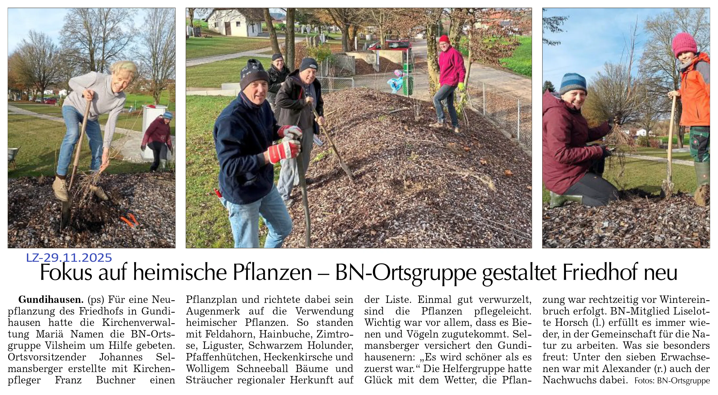 Der Friedhof in Gundihausen bekam vom BUND Naturschutz eine neue Hecke. Lesen Sie den Bericht aus der Landshuter Zeitung → HIER