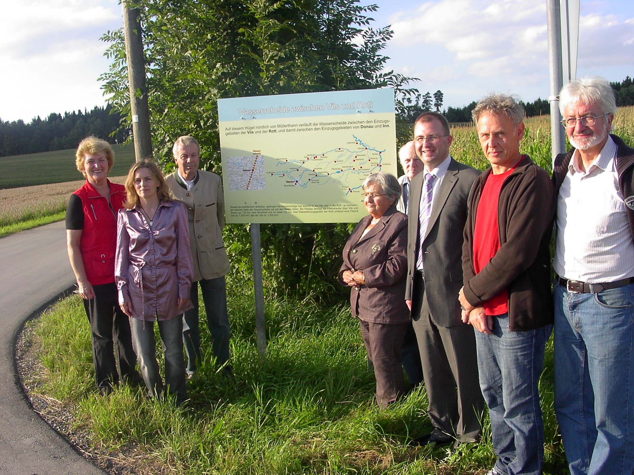 Bürgermeisterin Neudecker bedankte sich für die großzügige Spende und auch bei den Vertretern des Bundes Naturschutz für die Ausarbeitung der Tafeln, auf denen das Einzugsgebiet von Vils und Rott vermerkt sind. So beträgt die Fließstrecke von Bina und Rott 125 km bis zur Mündung in Schärding und 135 km die Strecke des Zellbaches über die Vils zur Donau in Vilshofen. Das Wassereinzugsgebiet umfasst eine Fläche von 1200 Quadratkilometern (Rott) und 1500 der Vils. Nach dieser Erschließung könne nun auch eine Erschließung von Radfahrwegen erfolgen, wie z.B. von Velden über die Drei-Quellen-Gemeinde Wurmsham nach Neumarkt-St. Veit und weiter der Rott entlang.