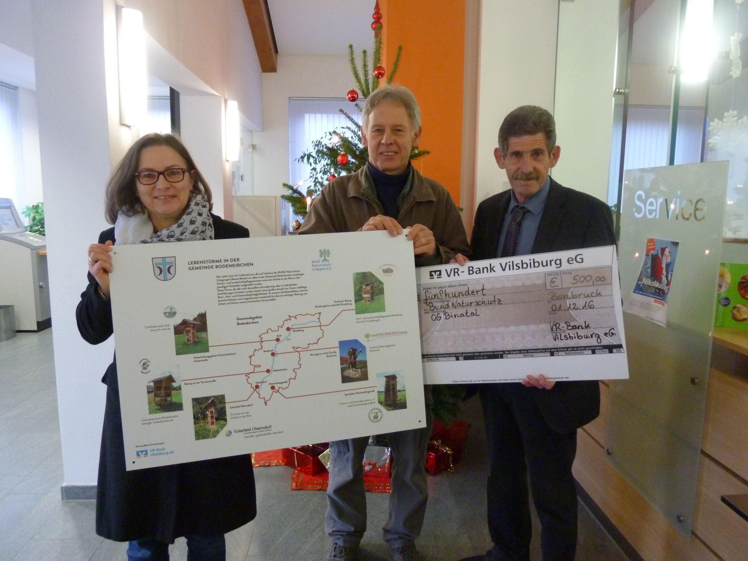 Auf Initiative der OG Oberes Binatal wurde in der Gemeinde Bodenkirchen das Projekt Lebensturm gestartet, an dem sich sämtliche im Gemeindegebiet ansässigen Landschafts-und Gartenbauvereine beteiligten.In den verschiedenen Ortsteilen wurden jeweils Lebenstürme aufgestellt, die alle nach dem gleichen Prinzip, aber sehr individuell in der Ausführung gestaltet wurden. Von der VR-Bank Vilsbiburg erhielt die Ortsgruppe eine Spende von 500 Euro. Damit wurden jetzt noch Infotafeln erstellt, für jeden Turm eine. So kann man an jedem Turm sehen, wo die jeweils anderen stehen und wie sie gestaltet sind. Die Ortsgruppe freut sich über die erfolgreiche Zusammenarbeit mit den Naturfreunden in der Gemeinde und hofft auf weitere gemeinsame Projekte.
