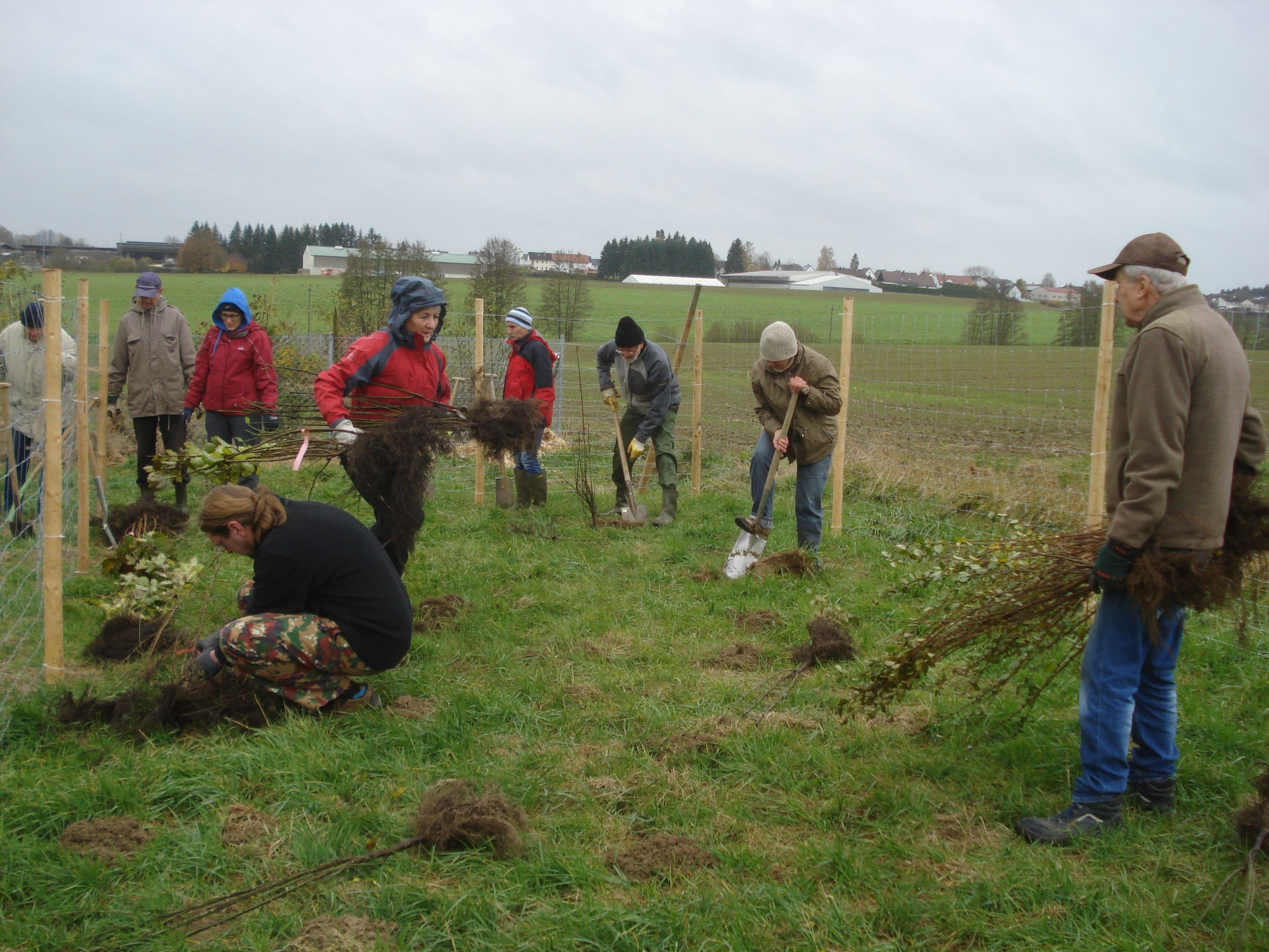 Bund Naturschutz pflanzt Feldhecke in Altfaltersberg