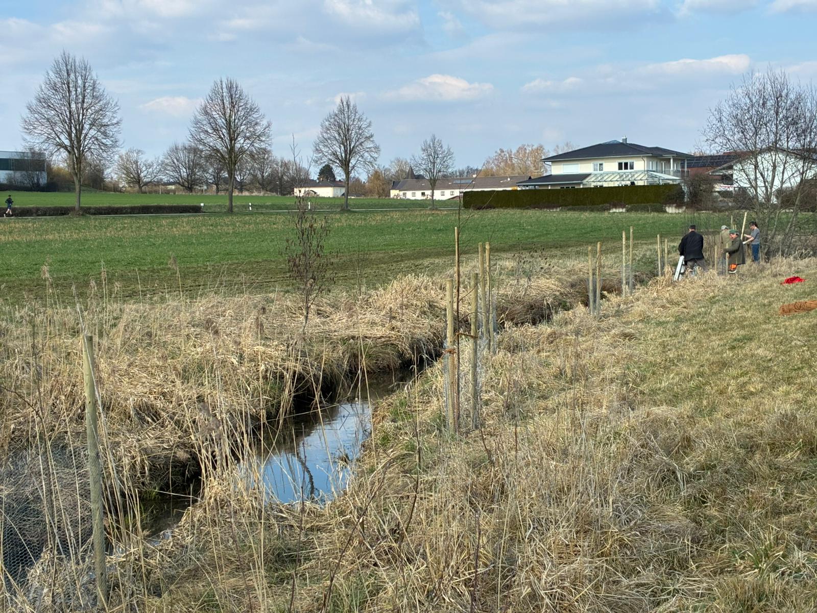 Am 20. März 2026 pflanzten 11 Aktive der BUND-Naturschutz-Ortsgruppe Oberes Binatal / Rottquelle 20 Schwarzerlen entlang der Bina bei Aich in der Gemeinde Bodenkirchen.