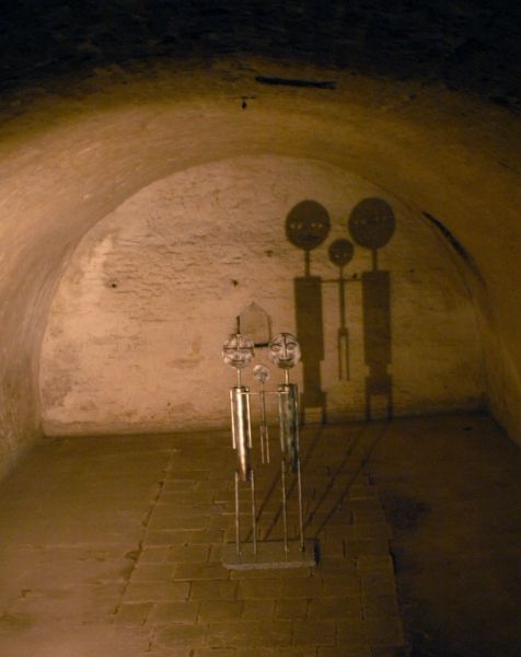 „Josef und Maria mit dem Kind“ in Lebensgröße. Das historische Kellergewölbe der früheren „Brauerei zur Post“ bildet einen schlichten Rahmen für die neuzeitlich gestaltete Figurengruppe. Gestaltet wurde sie vom Künstler Peter Huppmann mit Elementen aus Metall und Granit. Vergangenheit und Gegenwart treffen aufeinander, wo frühere Generationen Bierfässer lagerten und Schulkinder bei Fliegeralarm im zweiten Weltkrieg Unterschlupf fanden. Scheinbar nutzlos geworden, sind die beeindruckenden Bauwerke über Jahrzehnte fast in Vergessenheit geraten.
