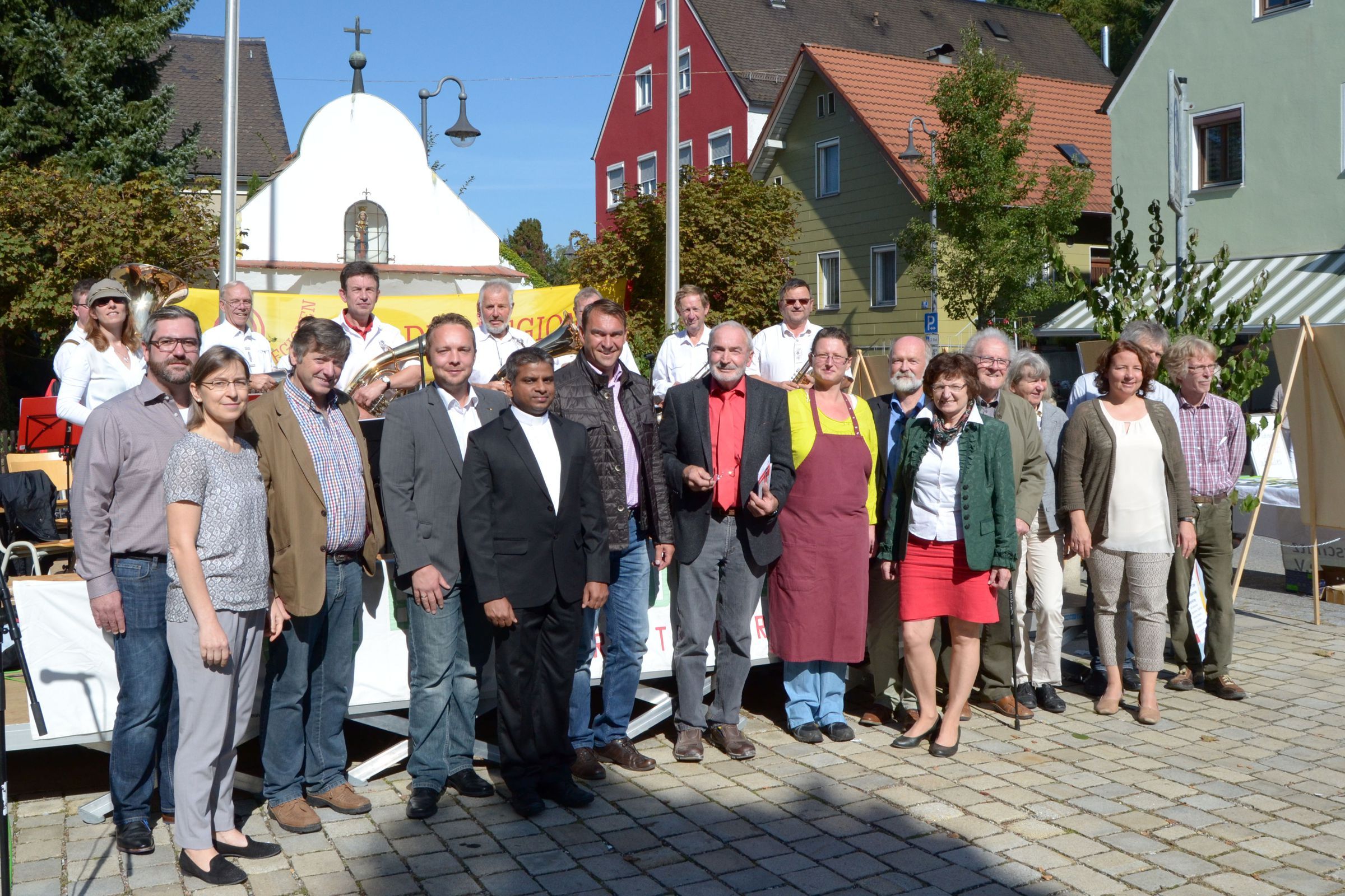 Am Sonntag begann Pater Sjio Vembilly den Festgottesdienst in der Pfarrkirche St. Georg, musikalisch begleitet vom Blasorchester der Städtischen Musikschule. Als Schirmherr eröffnete Bürgermeister Alfred Holzner den Umwelt-Markt auf dem Kapellenplatz mit vielfältigen Anziehungspunkten, mit Infoständen und Marktbuden. Kinder durften Kastanien-Kunstwerke und schön Herbstkränze aus Naturmaterialien basteln. Unter dem Label : „Rottenburger Biotop-Originale für Artenvielfalt und biotopischen Genus“, wurden den Marktbesuchern hier regionale Bio-Produkte angeboten, unter anderem von einem Streuobsthof und vom „Laabertaler Weiderind“ . Ab Mittag sorgen die Jungbläser der Städtischen Musikschule für die musikalische Unterhaltung, danach war die Musikschul-Band ein Anziehungspunkt besonders für das junge Publikum.