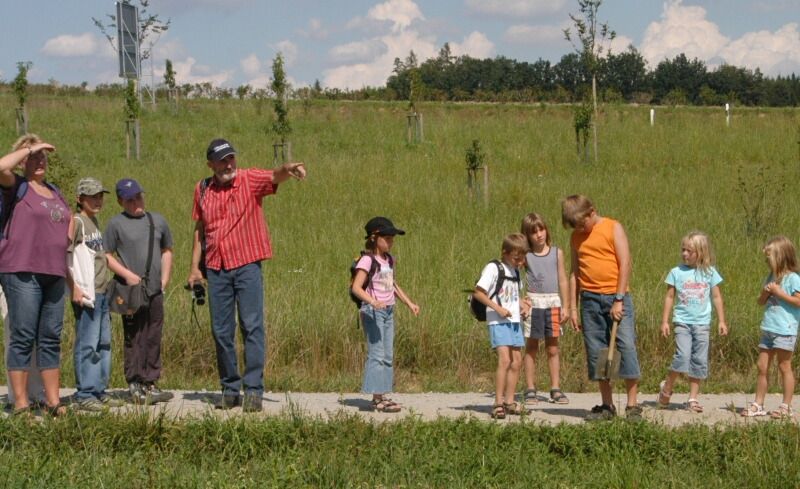 Aufmerksame Beobachter konnten am Rande einer artenreichen Trockenwiese  - neben der bunten Blumenvielfalt am sonnigen Ranken - seltene Vögel wie die Feldlerche, schillernde Eidechsen, Schmetterlinge, Käfer und „Heuhupfer“ (großes Heupferd) entdecken. Bei den Ferienkutschfahrten auf wenig befahrenen Feldwegen, umgeben von ausgedehnten Maisfeldern, machte der BN Ortsvorsitzende Franz Gumplinger deutlich, welch einen seltenen Schatz das vom Bund Naturschutz (BN) erworbene Flurstück „Biotopdreieck-Birkenhof“ für die Biotopvernetzung und den Erhalt einer reichen Artenvielfalt beutetet.