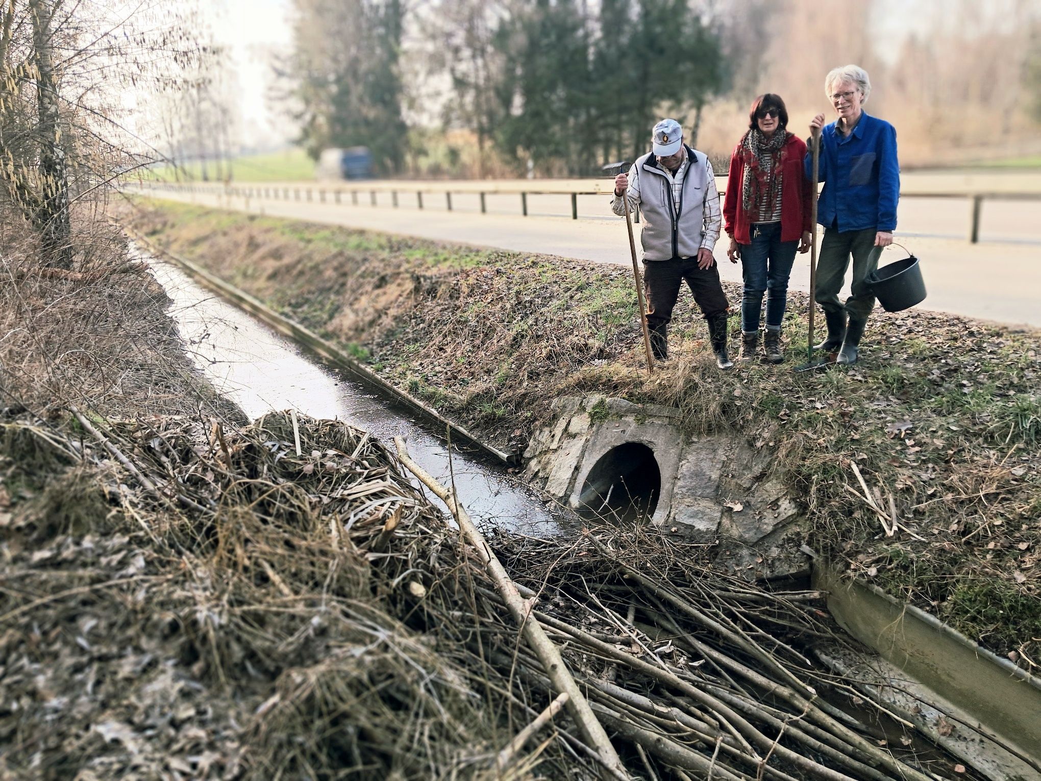 In Absprache mit dem Straßenmeister Herrn Andreas Maier konnte Ende 2008 ein Umleitungsgraben und ein Schutzwall von der Bund-Naturschutz Ortsgruppe Rottenburg in Eigenregie gebaggert werden, um das Biberrevier effektiv zur Straßenböschung hin abzugrenzen und so ein mögliches Aufweichen der Böschung zu vermeiden.