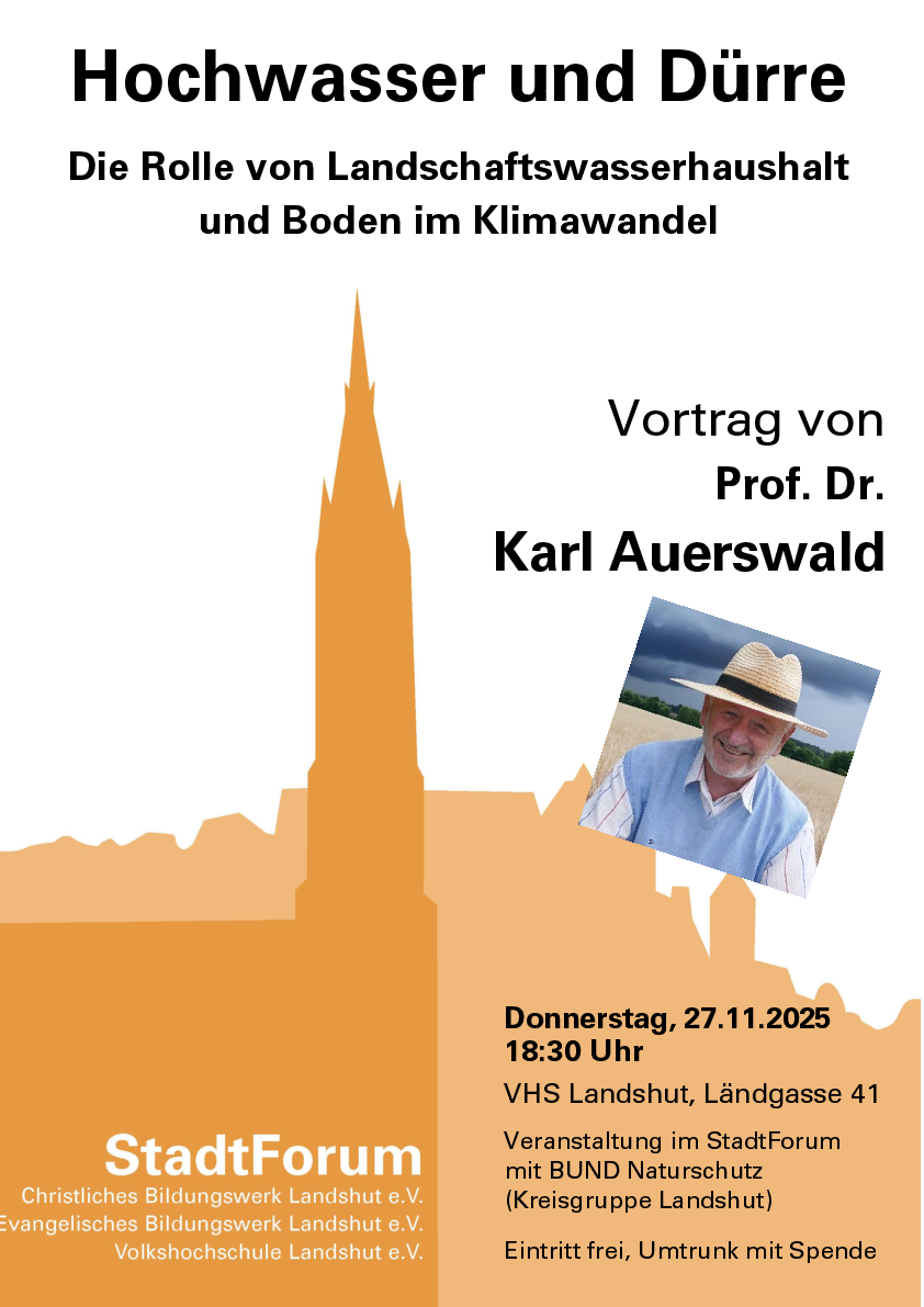 Ein Vortrag von Prof. Dr. Karl Auerswald zum Thema: “Hochwasser und Dürre - Die Rolle von Landschaftswasserhaushalt und Boden im Klimawandel”